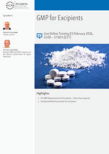 This Live Online Training provides regulatory requirements and recommendations (WHO, ICH, EU) for the handling and use of Excipients compared to Active Pharmaceutical Ingredients (APIs). The use, creation and implementation of a formalized Risk Assessment, which is common practice in the pharmaceutical industry nowadays, is a good tool to fulfil the GMP requirements. Therefore, the needed measurements and checks will be explained and the evaluation of the risks will be discussed.
